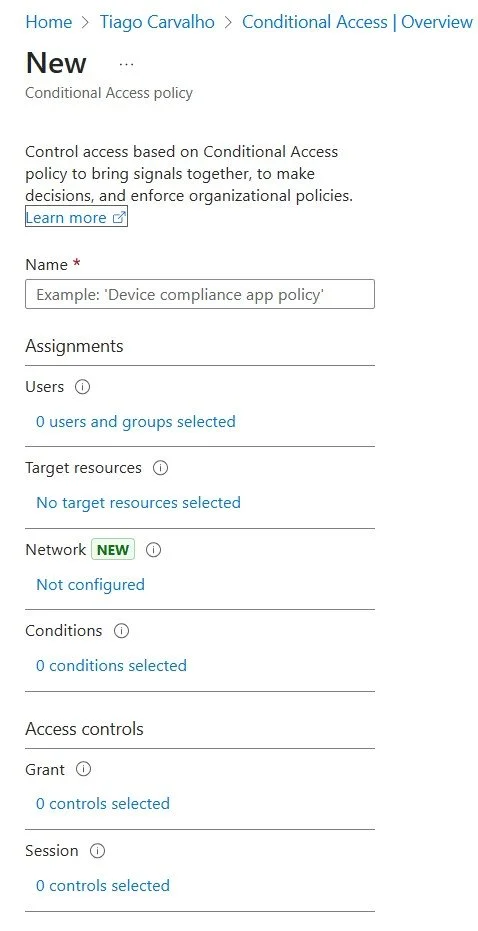Figure 2: The initial blade for creating a new Conditional Access policy.