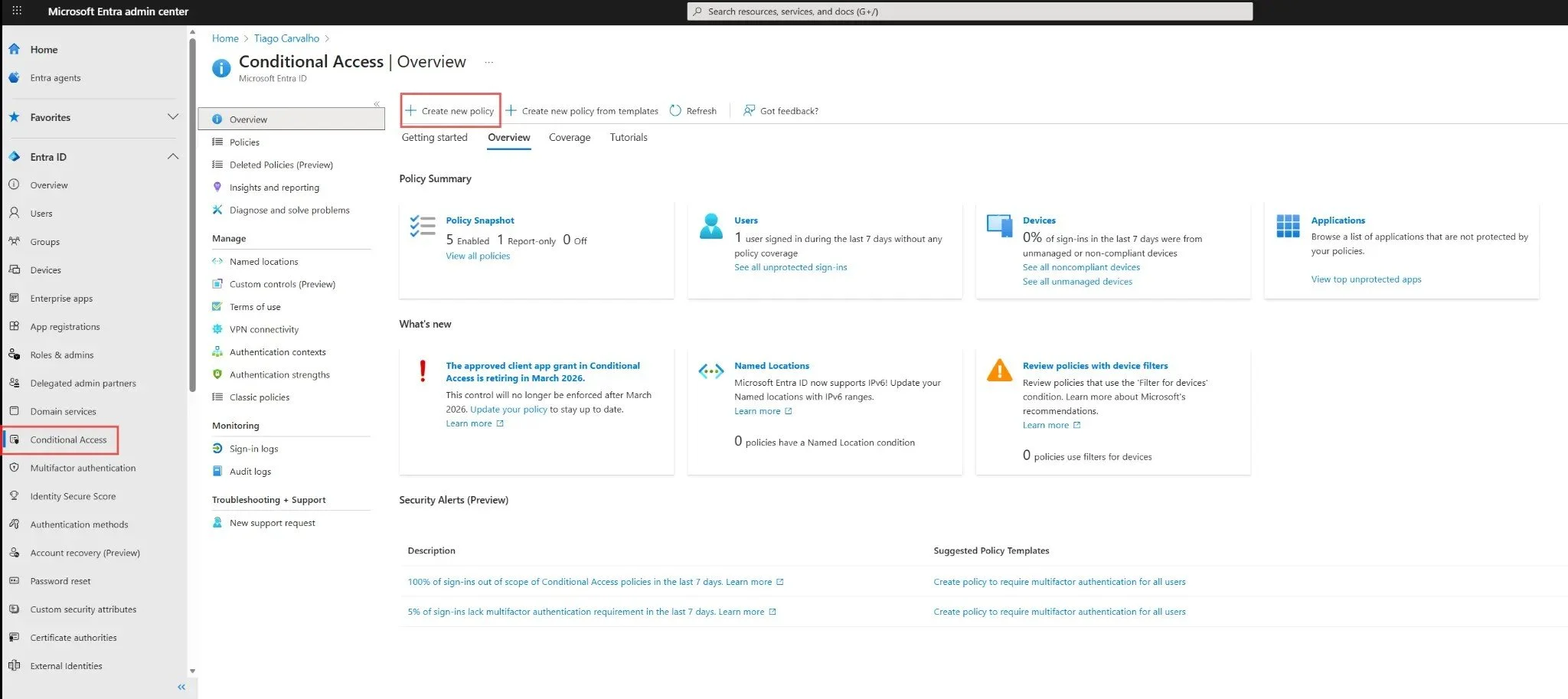 Figure 1: The Conditional Access overview page in the Microsoft Entra admin center.